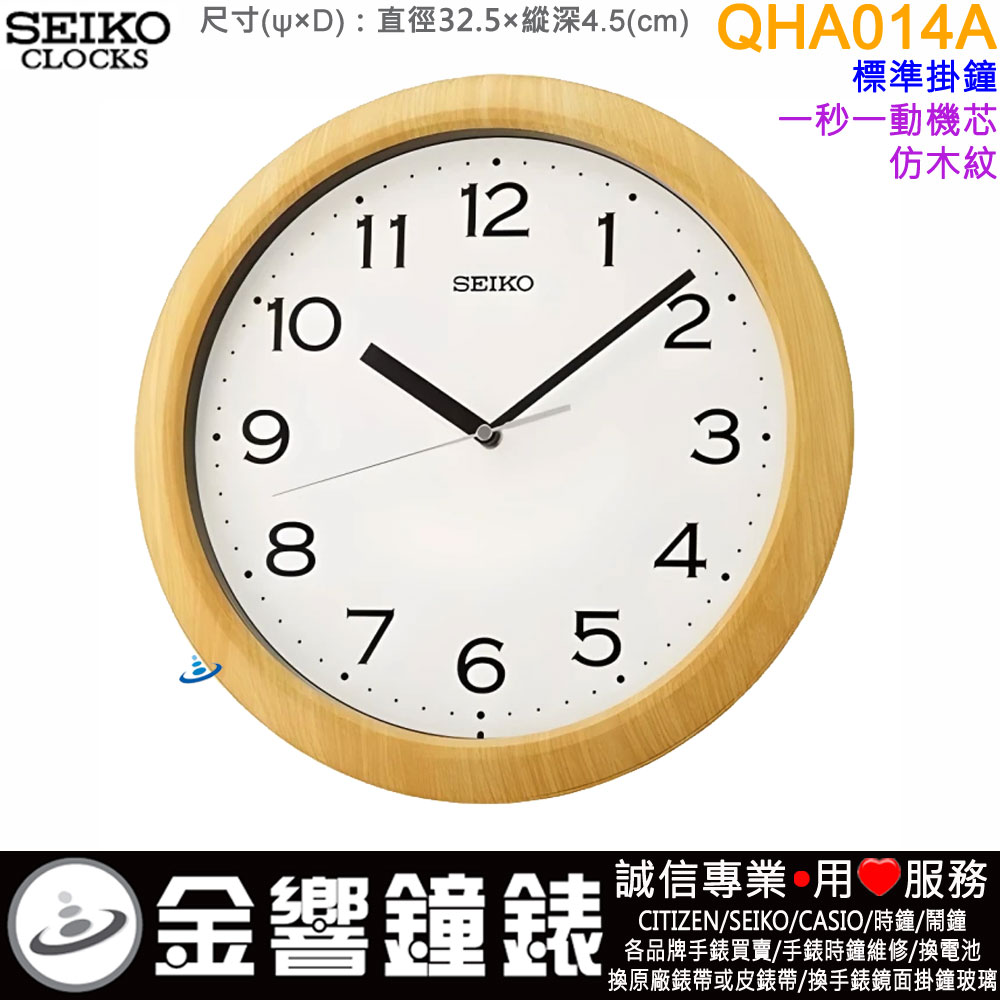金響鐘錶精品購物網::專賣原廠公司貨:::歡迎議價或門市購買全年優惠 EST.1995 » 時鐘系列 » SEIKO 標準掛鐘 » SEIKO 標準掛鐘 » ●金響鐘錶,現貨,SEIKO QHA014A(公司貨,保固1年):::SEIKO時尚掛鐘,一秒一動秒針,時鐘,仿木紋,直徑32.5cm,QHA-014A |