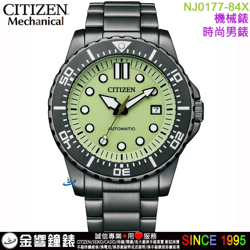金響鐘錶精品購物網::專賣原廠公司貨:::歡迎議價或門市購買全年優惠 EST.1995 » CITIZEN系列 » Mechanical 機械錶 » 【金響鐘錶】現貨,CITIZEN NJ0177-84X(公司貨,保固2年):::機械錶款,自動上鍊,日期顯示,強化玻璃鏡面,8210機芯,NJ017784X |