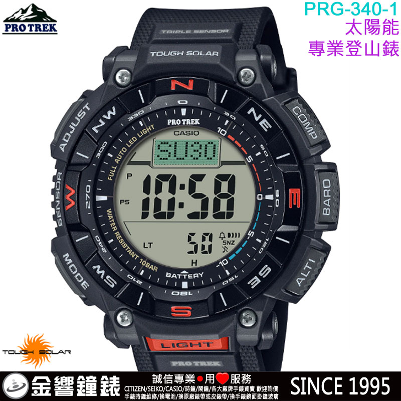 dot 【金響鐘錶】預購,CASIO PRG-340-1DR(公司貨,保固1年):::PRO TREK,太陽能專業登山錶,溫度,高度,氣壓,方位,PRG340