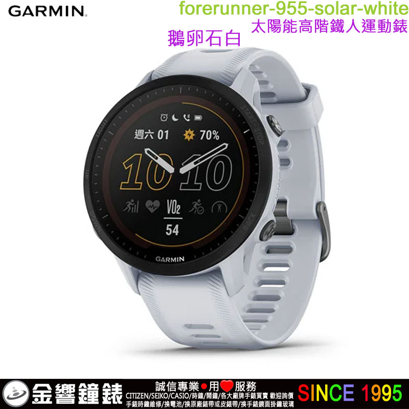 金響鐘錶精品購物網::專賣原廠公司貨:::歡迎議價或門市購買全年優惠 EST.1995 » 其他系列 » GARMIN運動手錶 » forerunner-955太陽能高階鐵人運動錶 » 【金響鐘錶】預購,GARMIN forerunner-955-solar-white鵝卵石白(公司貨,保固1年):::太陽能高階鐵人運動錶,forerunner955solar |
