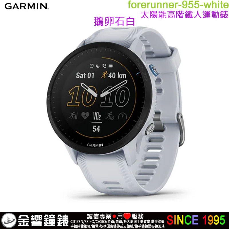 金響鐘錶精品購物網::專賣原廠公司貨:::歡迎議價或門市購買全年優惠 EST.1995 » 其他系列 » GARMIN運動手錶 » forerunner-955太陽能高階鐵人運動錶 » 【金響鐘錶】預購,GARMIN forerunner-955-white鵝卵石白(公司貨,保固1年):::太陽能高階鐵人運動錶,forerunner955solar |