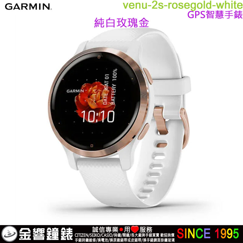 金響鐘錶精品購物網::專賣原廠公司貨:::歡迎議價或門市購買全年優惠 EST.1995 » 其他系列 » GARMIN運動手錶 » venu-2-2S GPS智慧腕錶 » 【金響鐘錶】預購,GARMIN venu-2s-rosegold-white純白玫瑰金(公司貨,保固1年):::GPS智慧腕錶,venu2s |