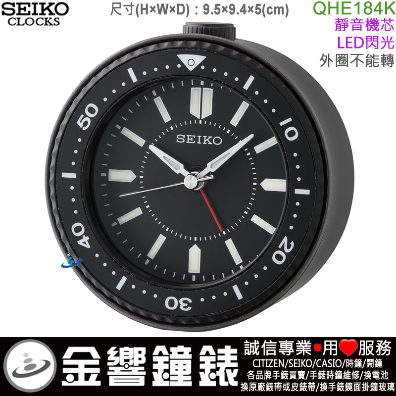 金響鐘錶精品購物網::專賣原廠公司貨:::歡迎議價或門市購買全年優惠 EST.1995 » 時鐘系列 » 鬧鐘 Alarm-Clocks » 指針型鬧鐘(滑動式秒針) » 【金響鐘錶】現貨,SEIKO QHE184K(公司貨,保固1年):::SEIKO指針型鬧鐘,靜音機芯,嗶嗶聲,燈光,夜光,貪睡,鬧鈴響時LED閃光,QHE-184K |