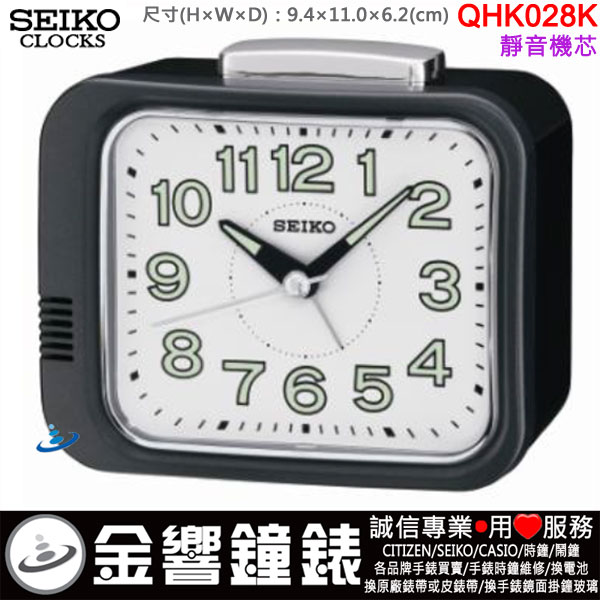 金響鐘錶精品購物網::專賣原廠公司貨:::歡迎議價或門市購買全年優惠 EST.1995 » 時鐘系列 » 鬧鐘 Alarm-Clocks » 指針型鬧鐘(滑動式秒針) » 【金響鐘錶】預購,SEIKO QHK028K(公司貨,保固1年):::SEIKO指針型鬧鐘,滑動式秒針,鈴聲鬧鈴,QHK-028K |