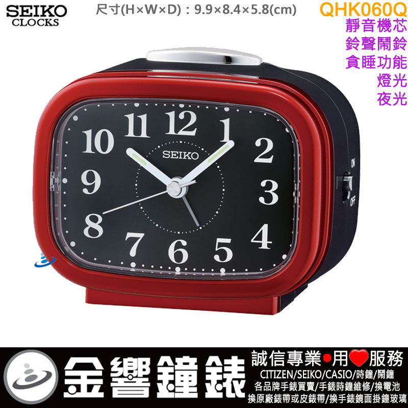 金響鐘錶精品購物網::專賣原廠公司貨:::歡迎議價或門市購買全年優惠 EST.1995 » 時鐘系列 » 鬧鐘 Alarm-Clocks » 指針型鬧鐘(滑動式秒針) » ●金響鐘錶,現貨,SEIKO QHK060Q(公司貨,保固1年):::SEIKO,鈴聲鬧鈴,靜音機芯,貪睡,燈光,夜光,QHK-060Q |