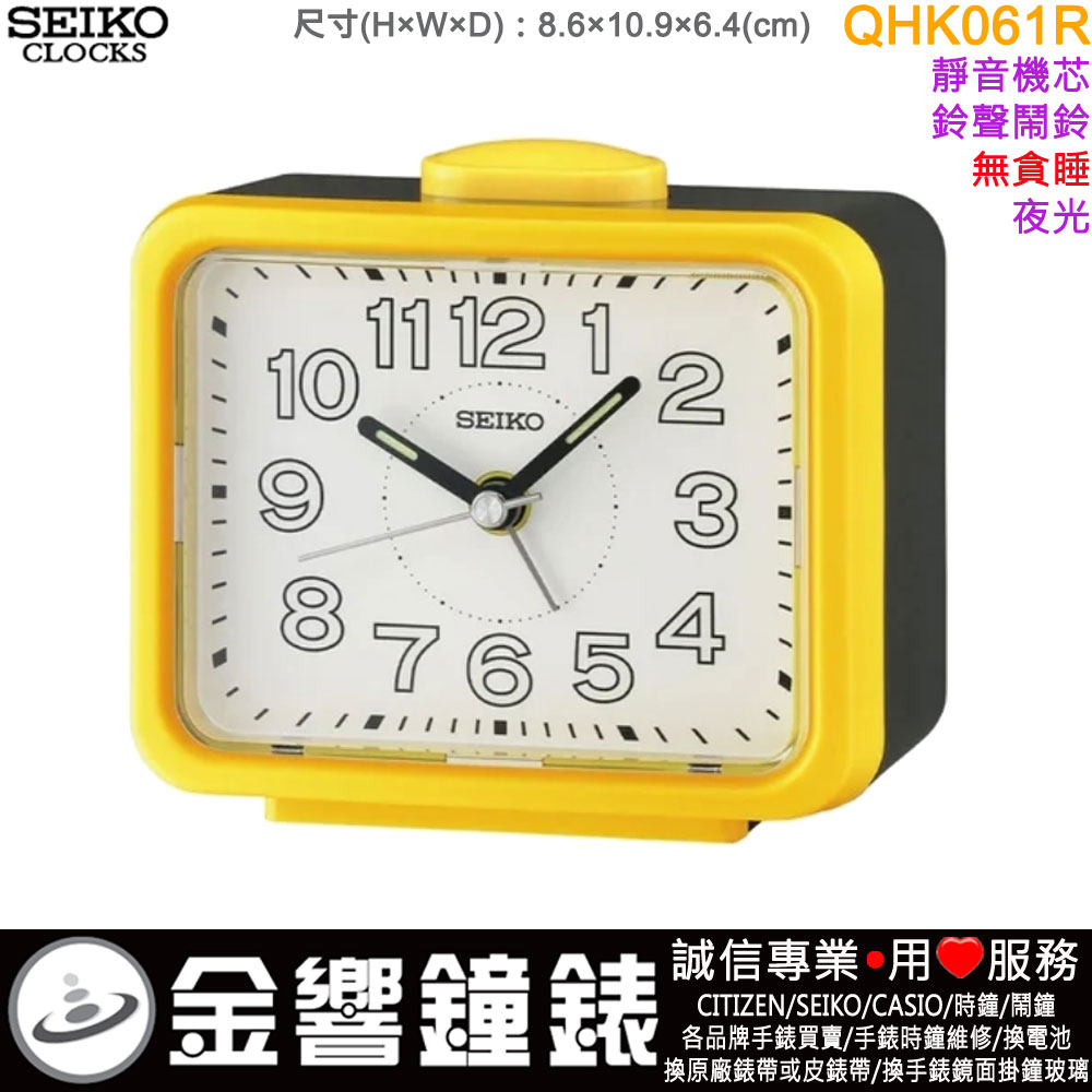 金響鐘錶精品購物網::專賣原廠公司貨:::歡迎議價或門市購買全年優惠 EST.1995 » 時鐘系列 » 鬧鐘 Alarm-Clocks » 指針型鬧鐘(滑動式秒針) » ●金響鐘錶,現貨,SEIKO QHK061Y(公司貨,保固1年):::SEIKO,鈴聲鬧鈴,靜音機芯,無貪睡,夜光,QHK-061Y |