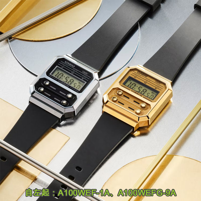 金響鐘錶精品購物網::專賣原廠公司貨:::歡迎議價或門市購買全年優惠 EST.1995 » CASIO系列 » FASHION 時尚錶款 » 【金響鐘錶】現貨,CASIO A100WEF-1ADF(公司貨,保固1年):::經典電子錶,復古造型設計,1/100碼錶,鬧鈴,A-100WEF |