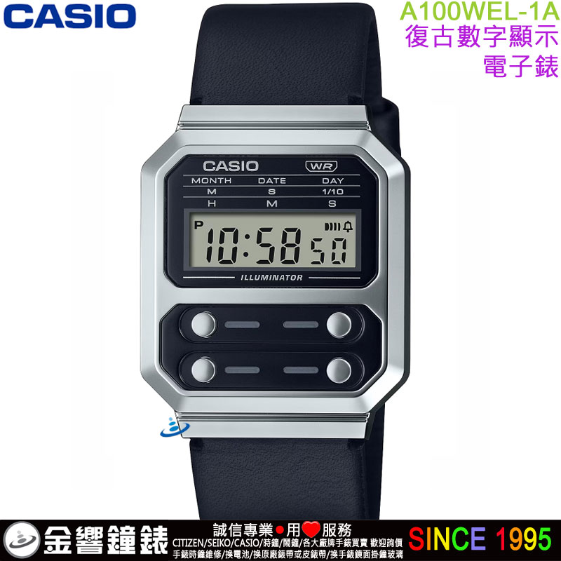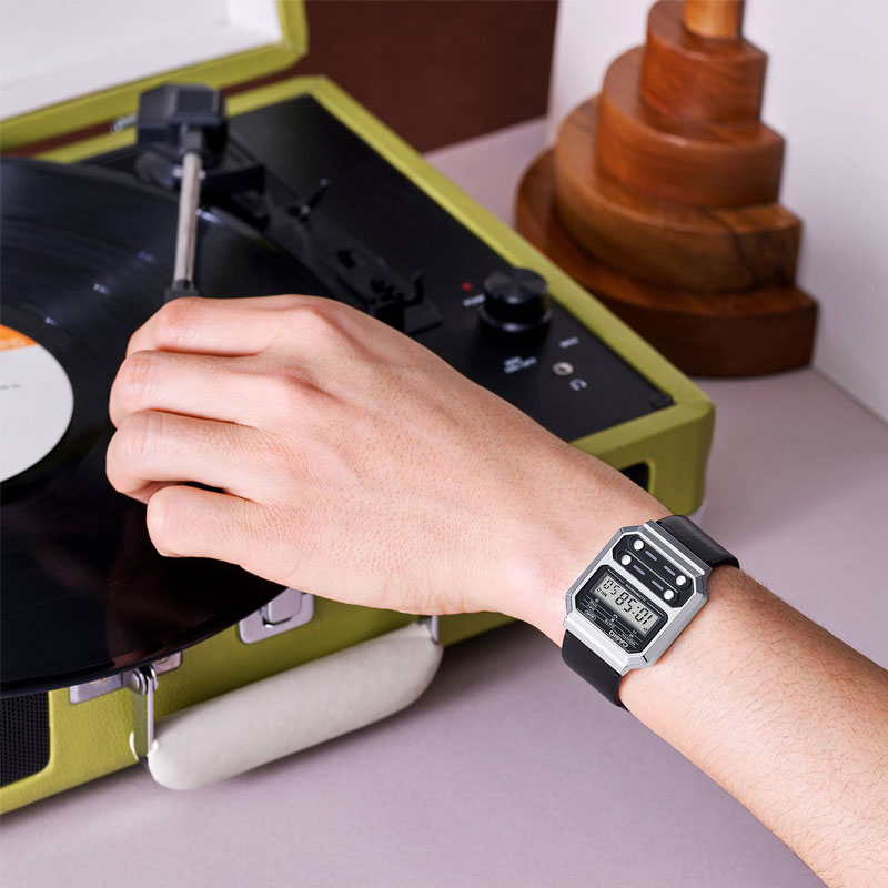 在歷久不衰的Casio手錶上運用單色設計,盡情享受對於所有復古事物的熱愛。為了向首款採用樹脂錶殼的Casio手錶F‐100致敬,A-100系列承襲了標誌性的四個正面按鈕,加入復古風金屬零件,重新演繹真正的經典。此錶款雖走復古風,但卻搭載現代化功能,具備碼錶、日曆和防水功能,方便日常使用,當然還有LED燈照明,讓您在任何光線條件下皆可輕鬆閱讀資訊。使用滑動錶扣輕鬆調整錶帶長度,達到最完美的貼合效果。