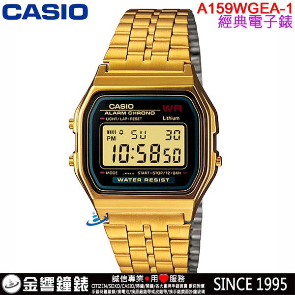 金響鐘錶精品購物網::專賣原廠公司貨:::歡迎議價或門市購買全年優惠 EST.1995 » CASIO系列 » FASHION 時尚錶款 » 【金響鐘錶】現貨,CASIO A159WGEA-1(公司貨,保固1年):::經典電子錶,碼表,鬧鈴,全自動日曆,A-159WGEA |