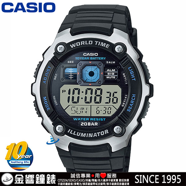金響鐘錶精品購物網::專賣原廠公司貨:::歡迎議價或門市購買全年優惠 EST.1995 » CASIO系列 » FASHION 時尚錶款 » 客訂商品,CASIO AE-2000W-1A(公司貨,保固1年):::10年電力,電子錶,大型螢幕,防水100米,世界時間,計時碼錶,刷卡或3期零利率,AE2000W |
