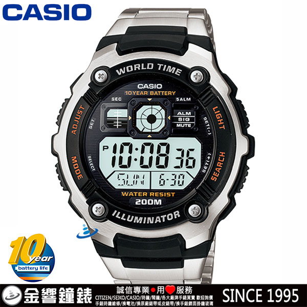 金響鐘錶精品購物網::專賣原廠公司貨:::歡迎議價或門市購買全年優惠 EST.1995 » CASIO系列 » FASHION 時尚錶款 » 客訂商品,CASIO AE-2000WD-1A(公司貨,保固1年):::10年電力,電子錶,大型螢幕,防水100米,世界時間,計時碼錶,刷卡或3期零利率,AE2000WD |