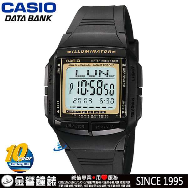 金響鐘錶精品購物網::專賣原廠公司貨:::歡迎議價或門市購買全年優惠 EST.1995 » CASIO系列 » FASHION 時尚錶款 » CASIO DB-36-9A(公司貨,保固1年):::10年電池,DATABANK系列,30組電話記憶,世界時間,碼錶,倒數計時,鬧鈴,刷卡或3期零利率,DB36 |