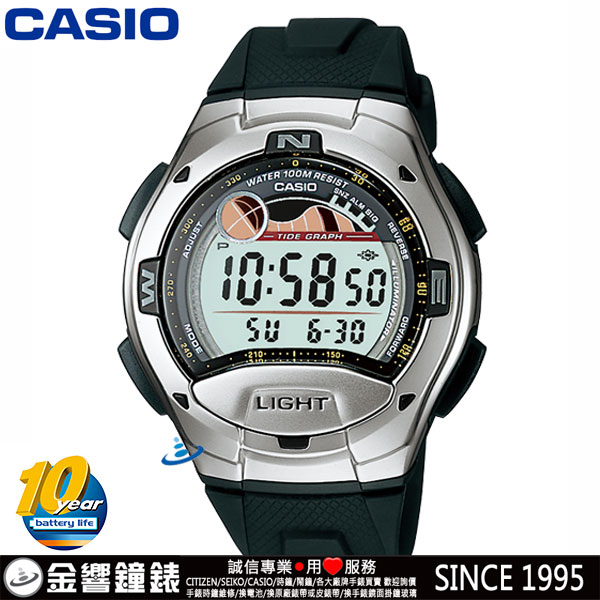 金響鐘錶精品購物網::專賣原廠公司貨:::歡迎議價或門市購買全年優惠 EST.1995 » CASIO系列 » FASHION 時尚錶款 » 客訂商品,CASIO W-753-1A(公司貨,保固1年):::10年電力,月相與潮汐圖,100米防水,方位指示,1/100秒碼錶,倒數計時,鬧鈴,刷卡或3期零利率,W753 |