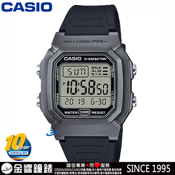 金響鐘錶精品購物網::專賣原廠公司貨:::歡迎議價或門市購買全年優惠 EST.1995 » CASIO系列 » FASHION 時尚錶款 » CASIO W-800HM-7A(公司貨,保固1年):::10年電力,經典造型,防水100米,兩地時間,多功能鬧鈴,自動LED背光,刷卡或3期零利率,W800HM |