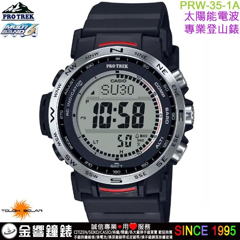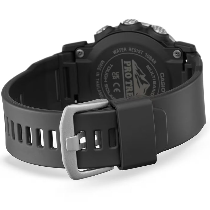 這款手錶提供了真正一應俱全的體驗,內建便捷的單觸式戶外功能,結合有助於減少環境衝擊的材質。這款數位版PRW-35能滿足您對大自然的熱情以及對環境的關愛。軟性樹脂錶帶採用孔隙設計,提供透氣舒適的佩戴感受。錶帶和錶殼、背蓋的關鍵零件採用生質樹脂,不僅減輕手錶重量,同時也提升手腕的舒適感,伴您度過精彩的戶外時光。只需按下錶殼右側的大型專用按鈕,即可查看羅盤方位、氣壓/高度和溫度。各個按鈕旁邊皆標有模式名稱,使所顯示的數位讀數一目瞭然。超扭曲向列(STN)的LCD液晶顯示搭配大型醒目的數位讀數,無論身在何處皆提供優異的判讀性,即使在最嚴峻的地形也沒有問題。
