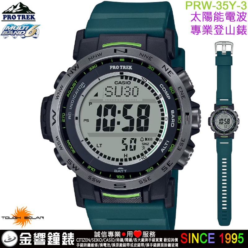 dot 金響鐘錶精品購物網::專賣原廠公司貨:::歡迎議價或門市購買全年優惠 EST.1995 » CASIO系列 » WAVE CEPTOR電波時計 » PRO-TREK 電波時計 » 【金響鐘錶】預購,CASIO PRW-35Y-3DR(公司貨,保固1年):::PRO TREK,太陽能電波時計,專業登山錶,6局電波接收,PRW35Y
