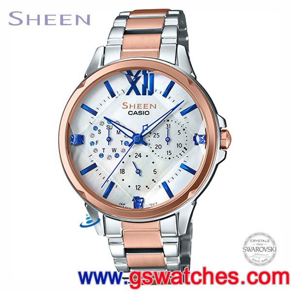 金響鐘錶精品購物網::專賣原廠公司貨:::歡迎議價或門市購買全年優惠 EST.1995 » CASIO系列 » Sheen 錶款 » 客訂商品,CASIO SHE-3056SPG-7AUDF(公司貨,保固1年):::Sheen,時尚女錶,星期,日期,24小時指針,刷卡或3期零利率,SHE3056SPG |