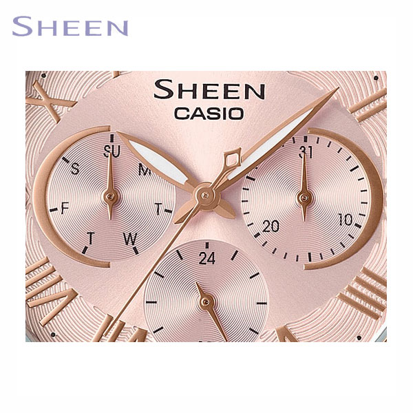 金響鐘錶精品購物網::專賣原廠公司貨:::歡迎議價或門市購買全年優惠 EST.1995 » CASIO系列 » Sheen 錶款 » 客訂商品,CASIO SHE-3058SPG-4AUDR(公司貨,保固1年):::Sheen,時尚女錶,日期,星期,24小時指針,刷卡不加價或3期零利率,SHE3058SPG |