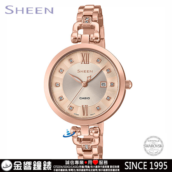 金響鐘錶精品購物網::專賣原廠公司貨:::歡迎議價或門市購買全年優惠 EST.1995 » CASIO系列 » Sheen 錶款 » 客訂商品,CASIO SHE-4055PG-4AUDF(公司貨,保固1年):::Sheen,時尚女錶,日期,刷卡或3期零利率,SHE4055PG |