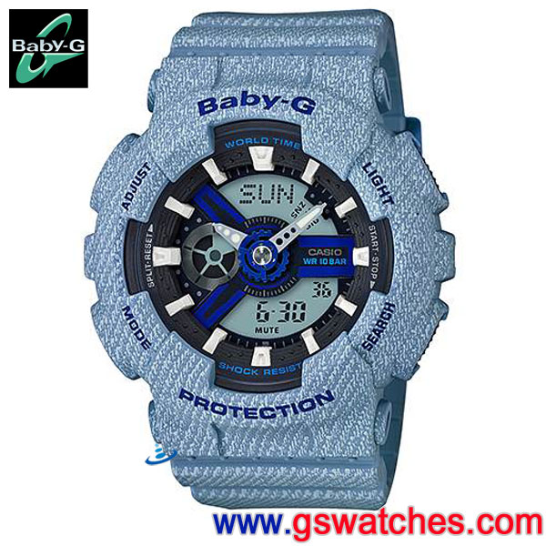 BABY-G 2017推出全新丹寧系列錶款,全系列以丹寧布料元素為設計主軸,型號包含由G-SHOCK 熱銷錶款GA-110 縮小而來的BA-110及經典不敗款BGD-560,利用CASIO多角度印刷技術將不同深淺丹寧材質紋路印刷在錶款上,即便是錶殼的彎曲處也能夠精準完美印刷,創造出猶如牛仔布質感的真實外觀,顏色上的選擇,BA-110DE提供飽和的深藍色或是復古水洗藍兩色選擇,而立體整點時刻與錶盤指針等細節處分別以玫瑰金及銀色點綴設計,讓錶款更為吸睛,而BGD-560DE為深藍色丹寧色搭配白底黑字液晶顯示,讓錶款顯得更有層次感,全系列具備耐衝擊構造、防水100米、計時碼錶、世界時間等多項功能。此外,此系列可與G-SHOCK全新丹寧列系的GA-100DE、DW-5600DE及GA-700DE成雙搭配成專屬情侶款,挑選彼此喜愛的丹寧色調來呈現兩人之間的風格穿搭。 ●原廠建議售價:NT$4,500 ●耐衝擊構造 ●Neobrite夜光塗料指針 ●礦物玻璃 ●防水100米 ●LED照明(餘暉設計) ●世界時間 ●29個時區(48城市+世界對應時間)、城市代碼顯示、日光節約時間(開/關) ●1/100秒計時碼錶: 測量上限:23:59'59.999" 測量單位:1秒 ●整點響報 ●全自動月曆(至2099年) ●12/24小時制切換 ●操作音(開啟/關閉) ●時間模式: 指針:兩針(時、分(每20秒移動一次)) ●電池壽命估計值:2年(使用SR726W*2) |