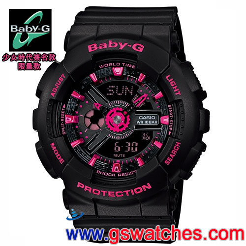 金響鐘錶精品購物網::專賣原廠公司貨:::歡迎議價或門市購買全年優惠 EST.1995 » 其他系列 » CASIO已完售錶款 » 已完售,CASIO BA-111GGA-1ADR(公司貨,保固1年):::Baby-G,指針+數字雙顯系列,少女時代簽名款,刷卡或3期零利率,BA111GGA |