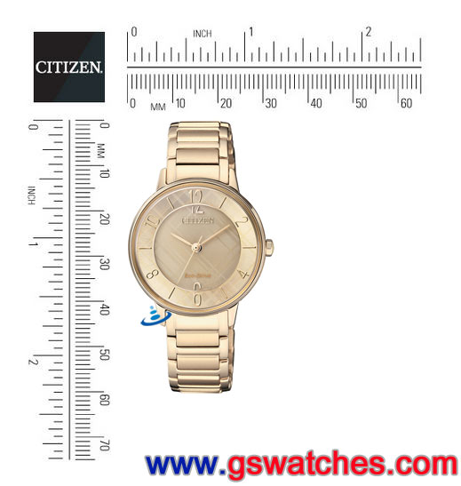 ●金響鐘錶販售之CITIZEN星辰錶皆為星辰錶公司(日本CITIZEN台灣分公司),代理之原廠公司貨,附有原廠保證書(保固二年(2011年10月1日全系列星辰錶開始實施台灣二年保固 / 國外保固一年政策))與原廠錶盒及說明書。 ![]() ●原廠建議售價:NT$9,900 ●JAPAN MOV'T 日本製機芯 ●Eco-Drive光動能,充滿電後可連續運作6個月 ●不繡鋼鍍金錶殼 ●不繡鋼鍍金錶帶 ●球面強化玻璃鏡面 ●5氣壓防水 ●雙邊按壓三折帶扣 ■尺寸/重量 鏡面直徑(ψ):27.5(mm)
