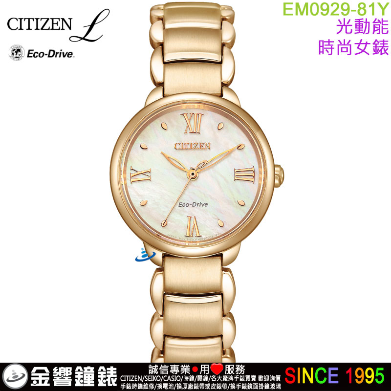 金響鐘錶精品購物網::專賣原廠公司貨:::歡迎議價或門市購買全年優惠 EST.1995 » CITIZEN系列 » L 錶款 » 【金響鐘錶】現貨,CITIZEN EM0929-81Y(公司貨,保固2年):::CITIZEN L,光動能,藍寶石鏡面,5氣壓防水,E031機芯,EM092981Y |