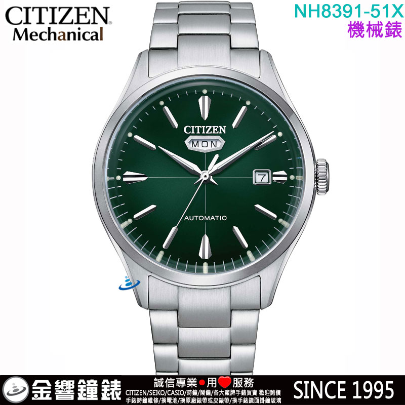 金響鐘錶精品購物網::專賣原廠公司貨:::歡迎議價或門市購買全年優惠 EST.1995 » CITIZEN系列 » Mechanical 機械錶 » 【金響鐘錶】現貨,CITIZEN NH8391-51X(公司貨,保固2年):::CITIZEN C7,機械錶款,自動上鍊,星期日期,8200機芯,NH839151X |