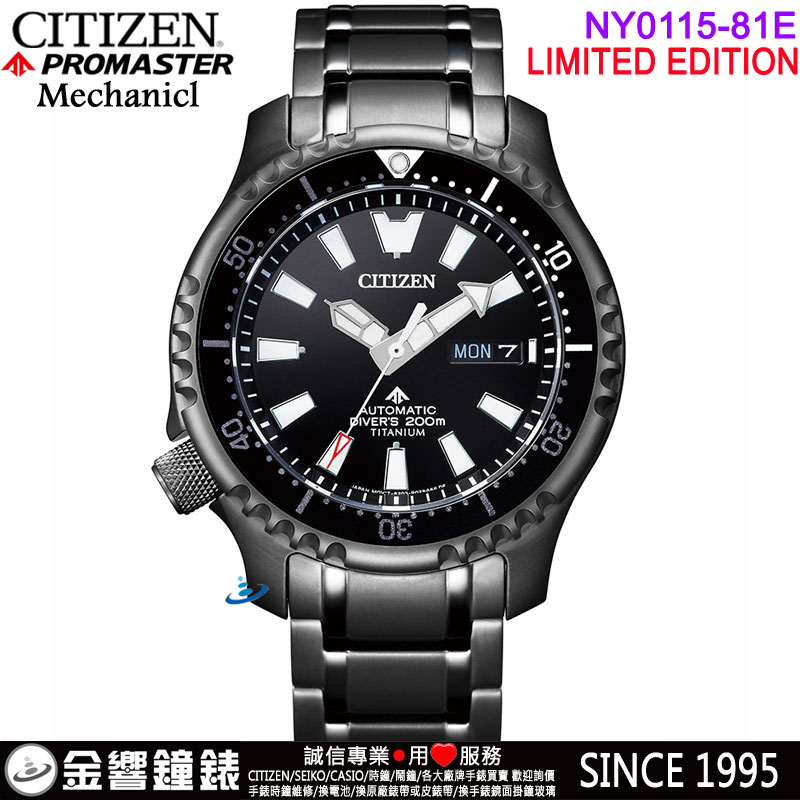 金響鐘錶精品購物網::專賣原廠公司貨:::歡迎議價或門市購買全年優惠 EST.1995 » CITIZEN系列 » PROMASTER 錶款 » 【金響鐘錶】現貨,CITIZEN NY0105-81E(公司貨,保固2年):::鈦黑河豚限量款,PROMASTER,自動上鍊,機械錶,潛水錶,星期日期,8203機芯,刷卡或3期,NY010581E |