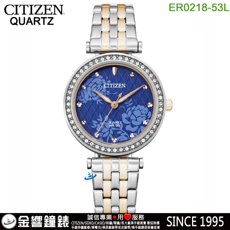 金響鐘錶精品購物網::專賣原廠公司貨:::歡迎議價或門市購買全年優惠 EST.1995 » CITIZEN系列 » Quartz石英錶 錶款 » 【金響鐘錶】現貨,CITIZEN ER0218-53L(公司貨,保固2年):::石英錶,9633機芯,時尚女錶,LADY'S,48顆水晶,刷卡或3期,ER021853L |