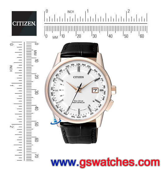 ●MOV'T JAPAN 日本製機芯 ●Eco-Drive光動能,充滿電後可連續運作24個月(省電模式時) ●不鏽鋼鍍金錶殼/小牛皮錶帶 ●藍寶石玻璃鏡面/單面防眩光處理 ●全球性電波時計 ●五局接收(美國,歐洲,日本2局,中國) ●撞擊偵測 ●指針修正 ●定時自動收訊功能 ●26個世界城市(+UTC時間) ●夏令時間 ●萬年曆 ●JIS1型防磁 ●日期顯示 ●10氣壓防水 ●雙邊按壓式H型帶扣 ■尺寸/重量 錶殼尺寸(W×H):45.6×48.9(mm)