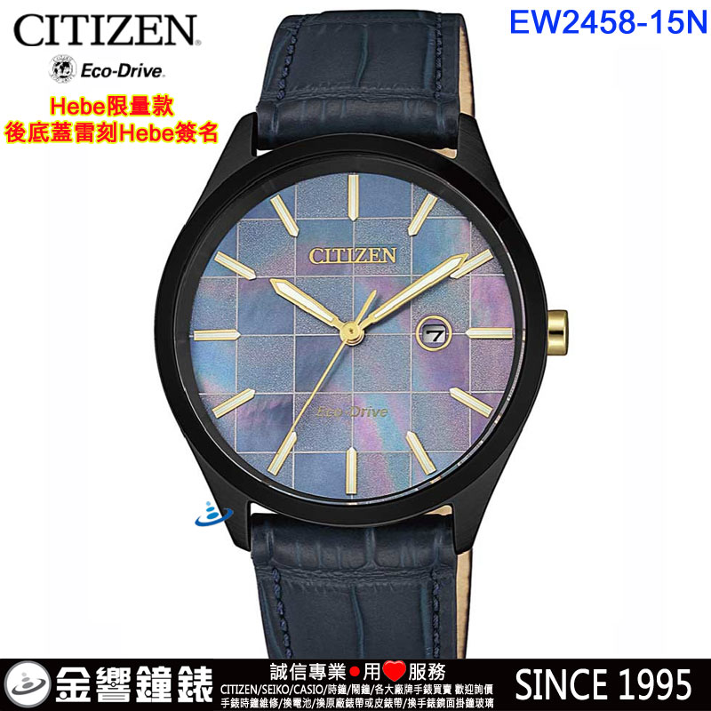 金響鐘錶精品購物網::專賣原廠公司貨:::歡迎議價或門市購買全年優惠 EST.1995 » 其他系列 » CITIZEN已完售錶款 » 已完售,CITIZEN EW2458-15N(公司貨,保固2年):::Eco-Drive,光動能,對錶系列(LADY'S),時尚女錶,HEBE,限量,日期顯示,刷卡或3期零利率,EW245815N |