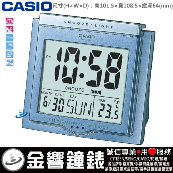 金響鐘錶精品購物網::專賣原廠公司貨:::歡迎議價或門市購買全年優惠 EST.1995 » 時鐘系列 » 鬧鐘 Alarm-Clocks » 數字型鬧鐘 » 【金響鐘錶】現貨,CASIO DQ-750F-2DF(公司貨,保固1年):::CASIO溫度數字型電子鬧鐘,冷光,貪睡,DQ750F |