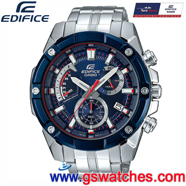 ![]() EDIFICE與賽車隊SCUDERIA TORO ROSSO推出最新聯名錶款EQB-900TR/EFR-559TR/EFR-559TRP,外觀設計靈感源自車隊的顏色,以藍、銀、紅三色設計為主,EQB-900TR採用藍色離子IP處理完成的錶圈搭配藍色錶盤,並搭載BLUETOOTH®藍牙連結智慧型手機之功能與圈速紀錄的計速儀,可同步傳輸智慧型手機的當地時間至手錶,雙錶盤世界時間顯示,讓團隊成員可以隨時掌握兩地時間,而太陽能電力系統,即便使用藍牙連線、計時碼錶等各項耗電功能也無須擔心零電力。EFR-559TR及EFR-559TRP錶圈同樣利用藍色離子IP處理完成,錶圈上的螺絲設計點綴,為錶款增添了粗曠質感,EFR-559TR為經典的不鏽鋼錶帶,而EFR-559TRP則提供耐用的樹脂錶帶,整體外觀設計展現出賽車運動的速度感,功能上具備防水100米、日期顯示、計時碼表…等功能。全新聯名系列錶背皆刻有賽車隊標誌,並提供特殊紀念錶盒包裝,EDIFICE長期支持車隊SCUDERIA TORO ROSSO,未來將繼續成為車隊信賴的時計品牌。