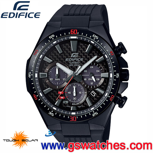 ![]() EDIFICE計時碼錶系列推出全新型號EQS-800CDB/ EQS-800CPB,搭載Tough Solar太陽能電力系統,太陽能面板吸收陽光或日光燈轉化電力,提供穩定的電力讓各項功能操作順利運轉,外觀設計上,錶盤為碳纖維材質搭配3D立體錶盤設計,搭配上黑色或藍色離子IP錶圈,打造出具流線造型與速度感的外觀。全新系列提供不鏽鋼錶帶及樹脂錶帶兩種選擇,功能上搭載防水100米、日期顯示、24小時制、電量指示、計時碼表等多項功能。