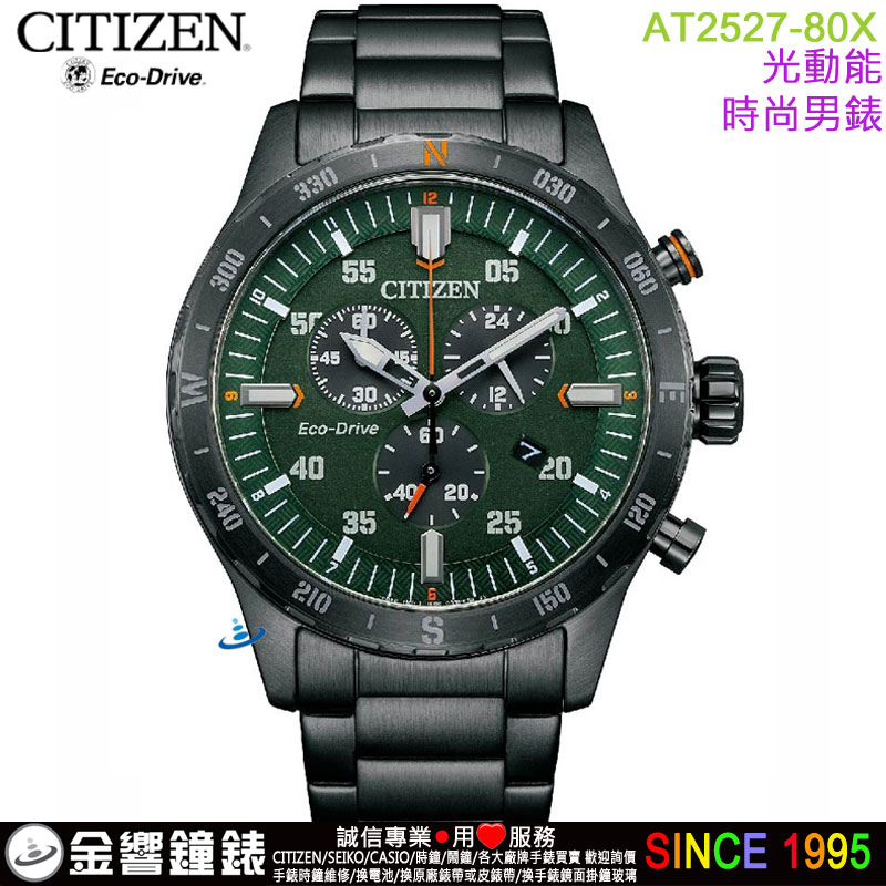 金響鐘錶精品購物網::專賣原廠公司貨:::歡迎議價或門市購買全年優惠 EST.1995 » CITIZEN系列 » ECO-DRIVE光動能 MEN'S » 計時碼錶 » 【金響鐘錶】現貨,CITIZEN AT2527-80X(公司貨,保固2年):::Eco-Drive,光動能,計時碼錶,時尚男錶,日期顯示,強化玻璃,H500機芯,AT252780X |