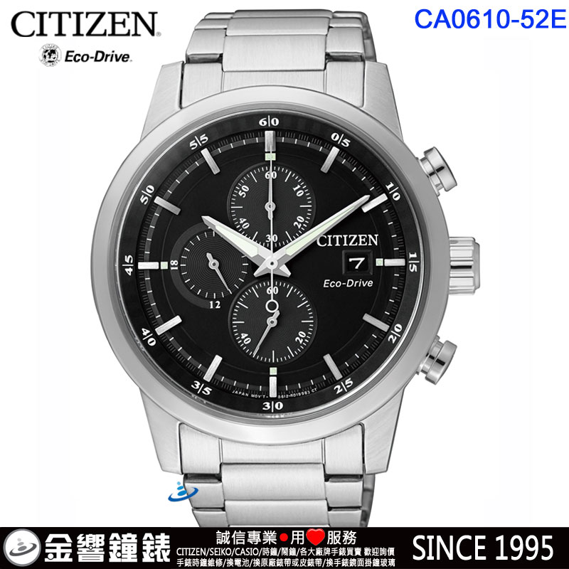 金響鐘錶精品購物網::專賣原廠公司貨:::歡迎議價或門市購買全年優惠 EST.1995 » CITIZEN系列 » ECO-DRIVE光動能 MEN'S » 計時碼錶 » 缺貨,CITIZEN CA0610-52E(公司貨,保固2年):::Eco-Drive光動能時尚男錶,計時碼錶,日期顯示,24小時制顯示,B612,免運費,刷卡或3期零利率,CA061052E |