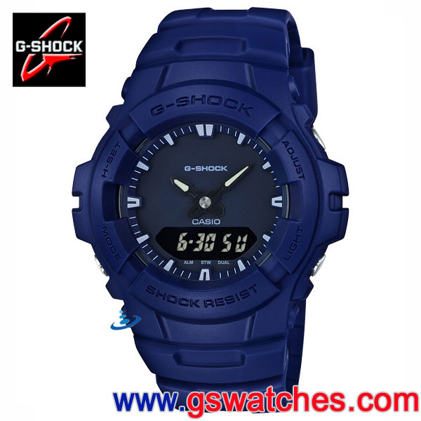 金響鐘錶精品購物網::專賣原廠公司貨:::歡迎議價或門市購買全年優惠 EST.1995 » CASIO系列 » G-SHOCK 錶款 » G-SHOCK指針+數字款 » 客訂商品,CASIO G-100CU-2ADR(公司貨,保固1年):::G-SHOCK,Standard,指針+數字雙顯,刷卡或3期零利率,G100CU |