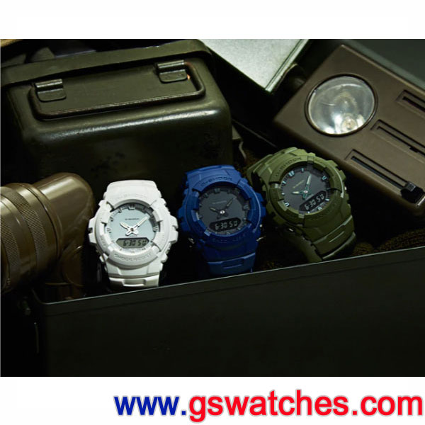 ![]() 堅持不斷創新突破的G-SHOCK,結合了時下流行的軍事風格及帥氣俐落的外觀設計推出G-100CU全新系列,G-100CU採用指針與數字的雙顯設計,簡約時尚的風格設計,從錶帶、錶面及錶盤皆採用同色調的霧面設計,而色系選擇包含時尚的藍色、帥氣的軍綠色及百搭的白色,全系列擁有強悍的防水200米與防震、耐摔構造,並搭載1/100秒碼表、兩地時間、每日鬧鈴、冷光照明和全自動月曆功能,同時擁有低調質感與多元機能。 ●原廠建議售價:NT$4,000