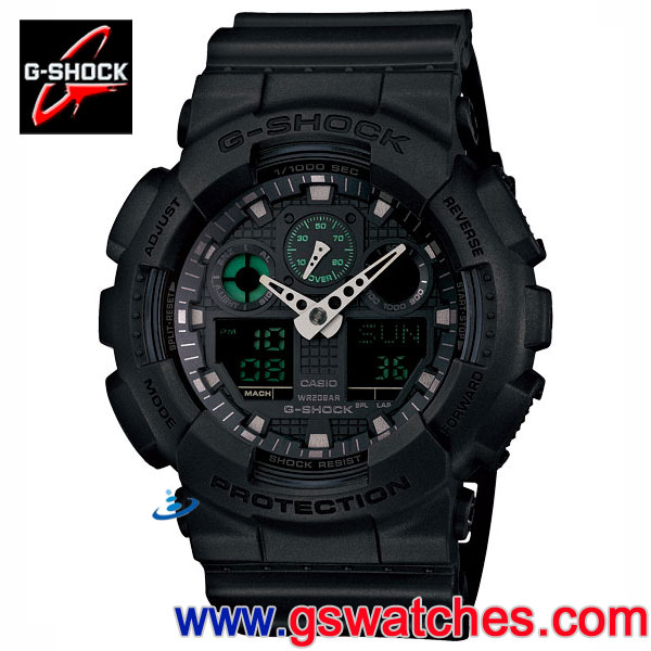 金響鐘錶精品購物網::專賣原廠公司貨:::歡迎議價或門市購買全年優惠 EST.1995 » CASIO系列 » G-SHOCK 錶款 » G-SHOCK指針+數字款 » 客訂商品,CASIO GA-100MB-1ADR(公司貨,保固1年):::G-SHOCK Standard,指針+數字雙顯系列,霧面黑,刷卡不加價或3期零利率,GA100MB |