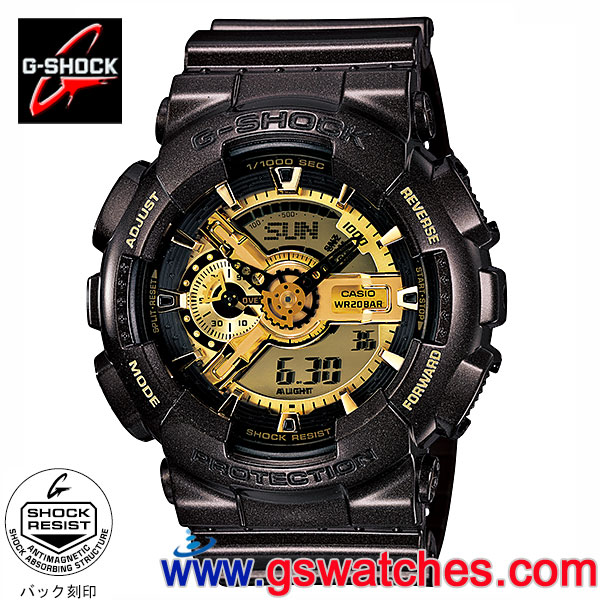 金響鐘錶精品購物網::專賣原廠公司貨:::歡迎議價或門市購買全年優惠 EST.1995 » CASIO系列 » G-SHOCK 錶款 » G-SHOCK指針+數字款 » 客訂商品,CASIO GA-110BR-5ADR(公司貨,保固1年):::G-SHOCK Color,指針+數字雙顯系列,咖啡金配色,刷卡不加價或3期零利率,GA110BR |