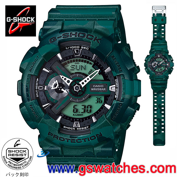 超人氣大錶徑GA-110系列錶款,推出秋冬迷彩新色設計,共有酷黑、大地綠、炫銀與亮黃等四色選擇,席捲街頭時尚浪潮!具備耐衝擊構造、防水200米、抗磁、世界時間、1/1000秒計時碼錶、倒數計時等多項功能。