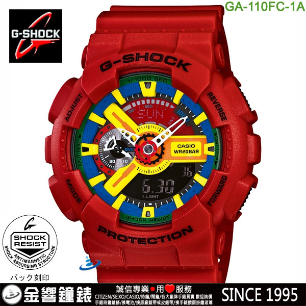 金響鐘錶精品購物網::專賣原廠公司貨:::歡迎議價或門市購買全年優惠 EST.1995 » CASIO系列 » G-SHOCK 錶款 » G-SHOCK指針+數字款 » 【金響鐘錶】現貨,CASIO GA-110FC-1ADR(公司貨,保固1年):::G-SHOCK Color,指針+數字雙顯系列,GA110FC |