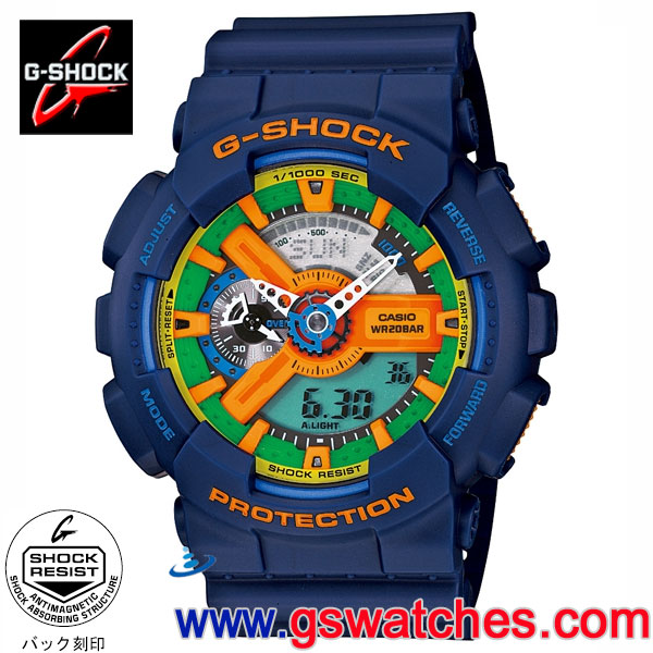 金響鐘錶精品購物網::專賣原廠公司貨:::歡迎議價或門市購買全年優惠 EST.1995 » CASIO系列 » G-SHOCK 錶款 » G-SHOCK指針+數字款 » CASIO GA-110FC-2ADR(公司貨,保固1年):::G-SHOCK Color,指針+數字雙顯系列,刷卡不加價或3期零利率,GA110FC |