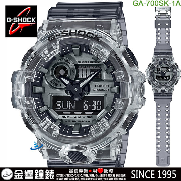 G-SHOCK早春推出全新以半透明材質為主題的全新系列,以80年代為靈感,將半透明材質結合鮮豔色彩或金屬色彩,打造出復古風格,此系列錶款型號包含GA-400SK,黑白兩色的透明錶身分別搭配搶眼的桃紅色與螢光綠,凸顯了年輕的氣息,而DW-5600、DW-6900、GA-700錶身則為灰色調,錶面採具金屬光澤的銀色設計,整體為同色調外觀。全系列功能上維持G-SHOCK既有的耐衝擊構造、防水200米、LED照明…等設計概念,更搭載世界時間、計時碼錶、倒數計時…等多項功能。