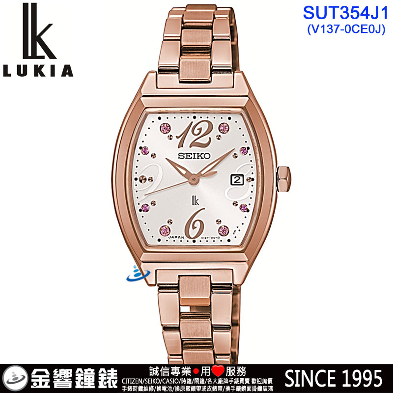 金響鐘錶精品購物網::專賣原廠公司貨:::歡迎議價或門市購買全年優惠 EST.1995 » SEIKO系列 » LUKIA 錶款 » LUKIA 太陽能錶款 » 客訂商品↘議價歡迎↘,SEIKO SUT354J1(公司貨,保固2年):::LUKIA,SOLAR,太陽能,V137機芯,藍寶石,日期,刷卡或3期,V137-0CE0J |