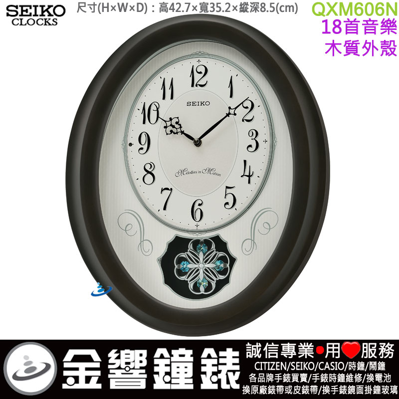 金響鐘錶精品購物網::專賣原廠公司貨:::歡迎議價或門市購買全年優惠 EST.1995 » 時鐘系列 » SEIKO 時尚音樂掛鐘 » 【金響鐘錶】現貨,SEIKO QXM606N(公司貨,保固1年):::SEIKO 18組高音質音樂,木質外殼,音樂掛鐘,掛鐘,QXM-606N |