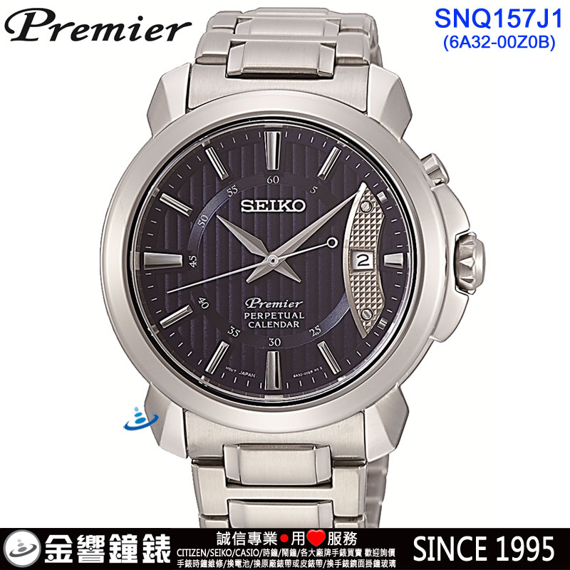 金響鐘錶精品購物網::專賣原廠公司貨:::歡迎議價或門市購買全年優惠 EST.1995 » SEIKO系列 » PREMIER 錶款 » 客訂商品↘議價歡迎↘,SEIKO SNQ157J1(公司貨,保固2年):::PREMIER,6A32機芯,石英機芯,萬年曆,藍寶石,刷卡或3期零利率,6A32-00Z0B |