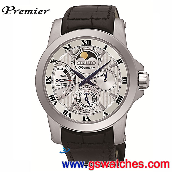 金響鐘錶精品購物網::專賣原廠公司貨:::歡迎議價或門市購買全年優惠 EST.1995 » SEIKO系列 » PREMIER 錶款 » 客訂商品,SEIKO SRX011J2(公司貨,保固2年):::日本製,PREMIER,5D88機芯,人動電能,月相腕錶,藍寶石,日期,星期,動力儲存,刷卡或3期零利率,5D88-0AG0P |