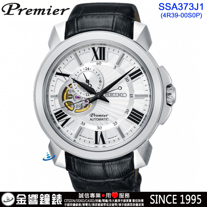 金響鐘錶精品購物網::專賣原廠公司貨:::歡迎議價或門市購買全年優惠 EST.1995 » SEIKO系列 » PREMIER 錶款 » 客訂商品↘議價歡迎↘,SEIKO SSA373J1(公司貨,保固2年):::PREMIER,4R39機芯,自動兼手上鍊,開芯機械錶,藍寶石,面板簍空,24小時,刷卡或3期零利率,4R39-00S0P |